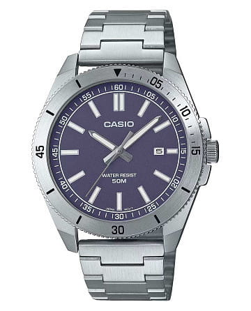 Спортивные японские мужские часы Casio Collection MTP-B155D-2EV с минеральным стеклом , устойчивым к мелким механическим повреждениям. Корпус часов изготовлен из нержавеющей стали. Вращающийся стальной безель . Стрелки и метки с люминесцентным покрытием . Задняя крышка с винтовым фиксатором. Батарейка рассчитана на 3 года. Окошко даты в положении 3 часа. Класс водозащиты: 50 метров, позволит защитить корпус от случайных брызг или капель дождя. Стальной браслет на раскладной застёжке .