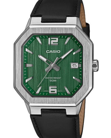 Кварцевые часы Casio MTP-B195L-3A в корпусе из нержавеющей стали диаметром 38 мм. Зеленый циферблат с накладными индексами и окном даты на 3 часах закрыт минеральным стеклом . Кожаный ремешок на стандартной застежке. Водозащита WR 50 обеспечивает защиту от брызг и кратковременного контакта с водой без погружения. Питание от батареи. Формат повседневный.
